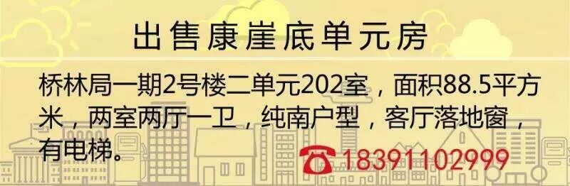 ▼ 康崖底桥林一期2#楼3单元好楼层,两室两厅明厨明卫,94平方米!(联系电话:13409112261)