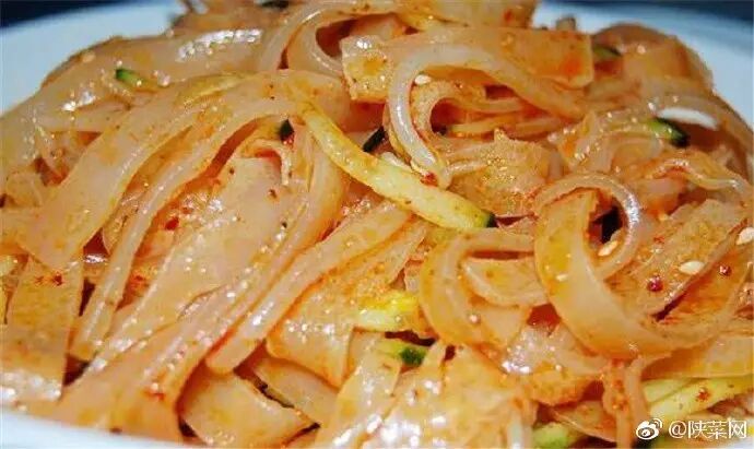 据“陕菜网”微博公布的消息显示:擀面皮是陕西地区特有的传统名小吃。具有筋斗、柔软、凉香、酸辣可口的特点。大口的吃进嘴里,静心用齿间去感受它的柔韧,唇舌之间味道十足。