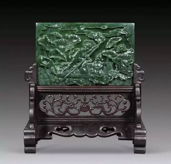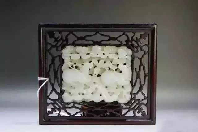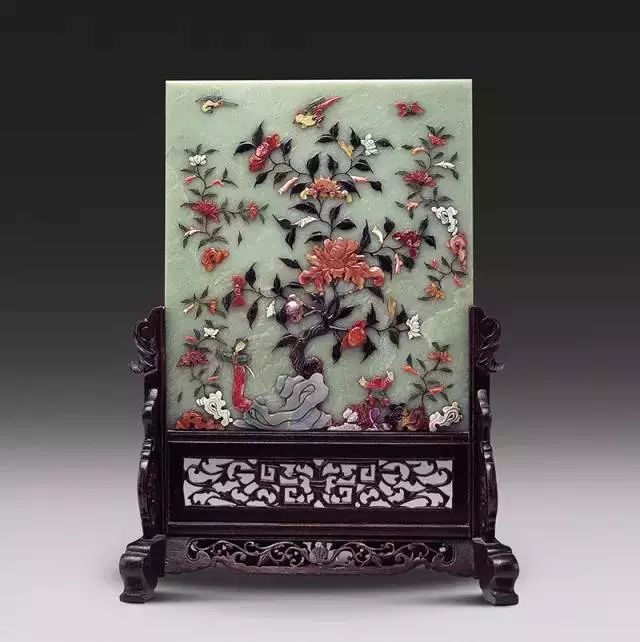 青白玉镶八宝花卉纹砚屏