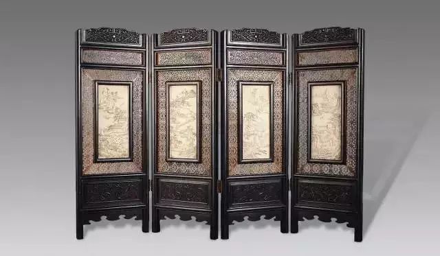 清紫檀镶象牙屏风