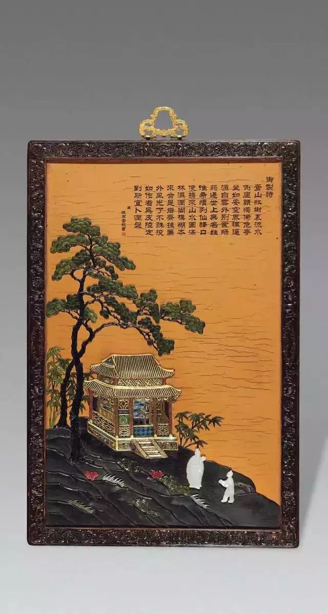 清紫檀框漆地楼阁人物诗文挂屏
