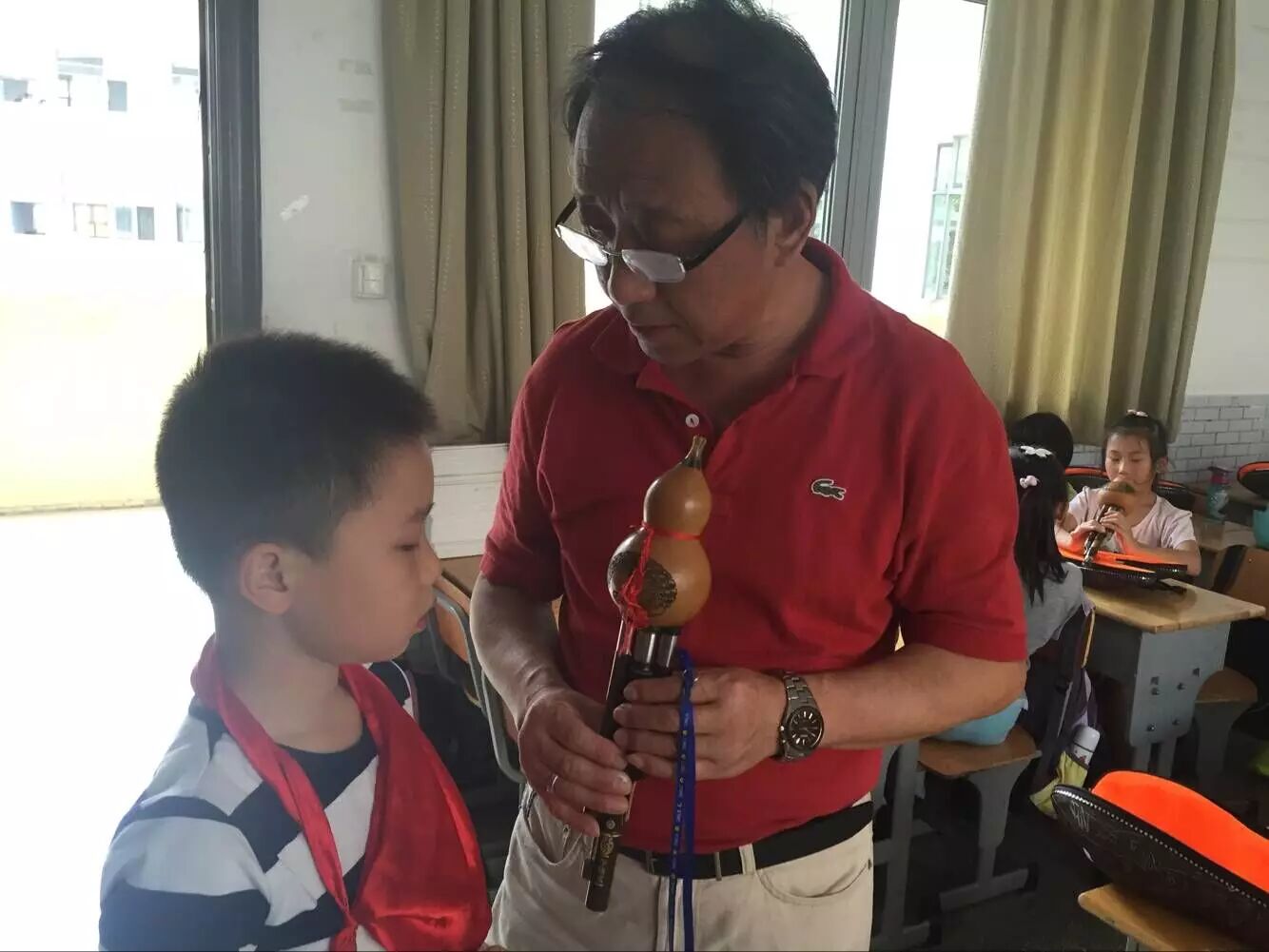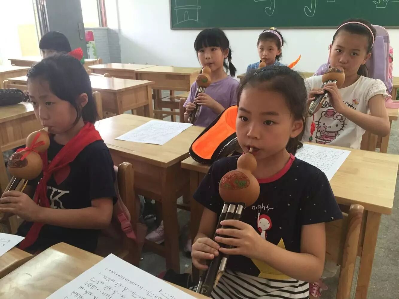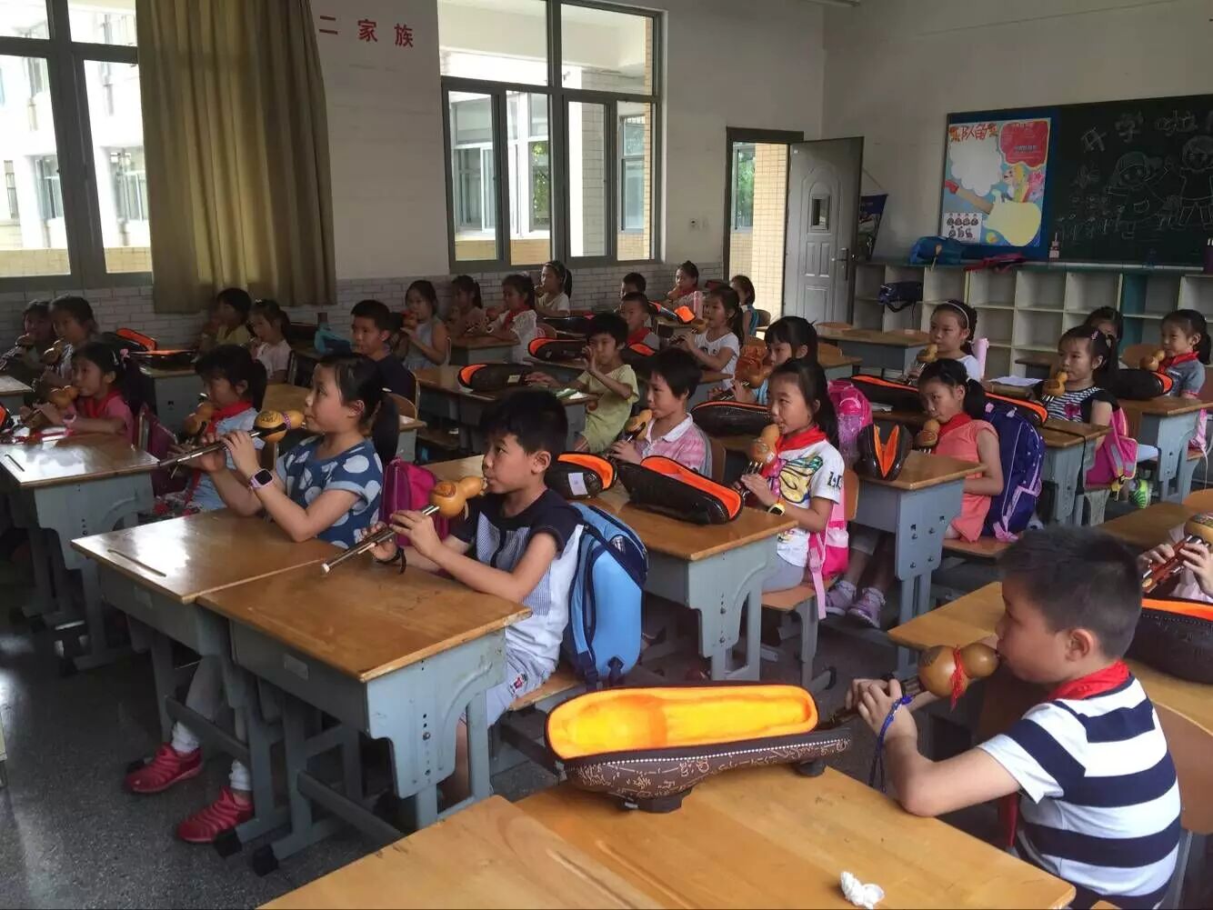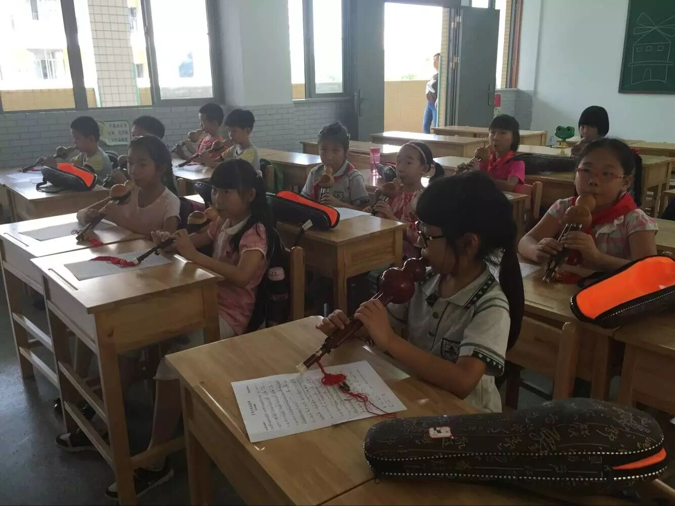 吹奏葫芦丝对学生来说是一种新的体验,学生们学的很开心,玩的也很开心~