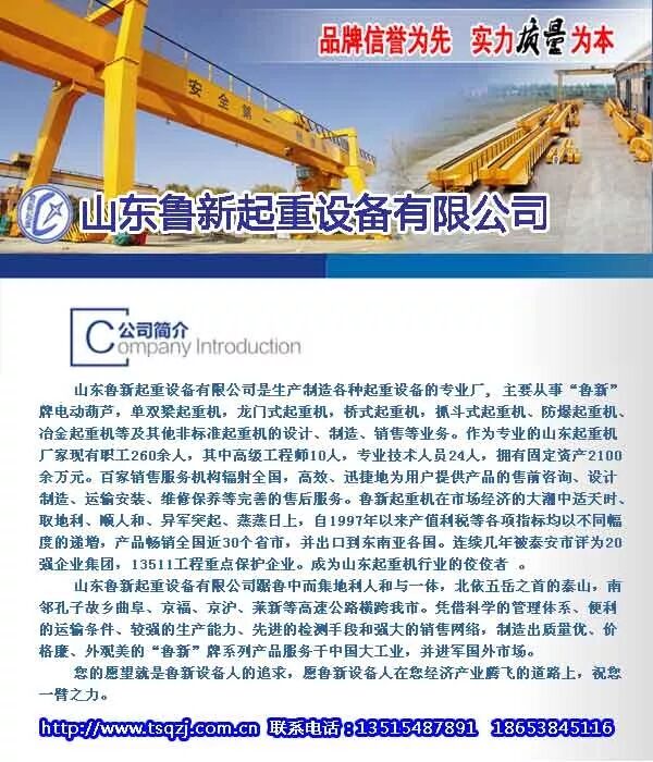 挑选单梁起重机,泰安单梁起重机,鲁新起重机由山东鲁新起重设备有限公司提供。山东鲁新起重设备有限公司(www.tsqzj.com.cn)优质的服务和产品,不断地受到新老用户及业内人士的肯定和信任。我们公司是全网商盟认证会员,点击页面的商盟客服图标,可以直接与我们客服人员对话,愿我们今后的合作愉快!