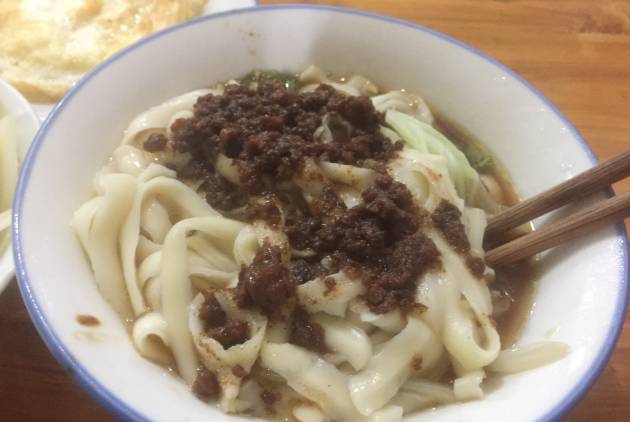 面条用的是挂面条,煮的很软但是又不会粘坨在一块,油辣子的芳香和酱油的厚重非常入味,细碎的肉渣渣,合着面超级好吃!!