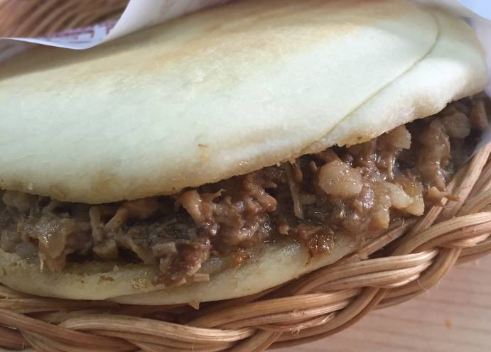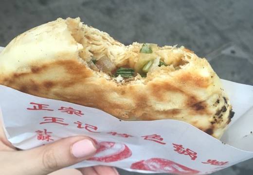这家的锅盔常常需要排队,口味众多可供选择,选的牛肉夹饼锅盔,制作简单,就是凉拌三丝加牛肉,拌匀码味后加入刚出炉的锅盔里。入口惊艳,锅盔酥脆化渣,馅料肉感嚼劲,酸辣够味。