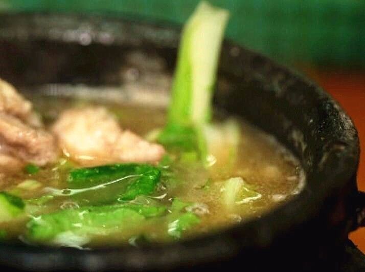夹起一块排骨,就看到表面浸润的红油。轻轻一碰就肉骨分离了,肉在长时间的炖煮中保持了鲜嫩,入口软烂入味。砂锅中温度正高,夹起一筷子青菜稍稍涮一下就熟了。肉汤裹在脆生生的菜叶上,平添了几分鲜味。