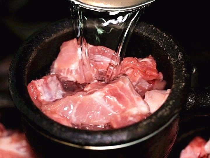 到后厨一看才知道,肉砂锅里不加任何高汤,只用清水和鲜肉来炖。锅中没有多余的配料,只加入少许葱姜去腥,小火炖上一两个小时。这样不仅保留了食材的营养,小锅炖出来的汤头也更香醇一些。