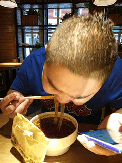 酸辣粉倒是常见,但能把酸与辣体现得如此淋漓尽致,我还是头一次吃到。手打的红薯粉煮得晶莹,很Q很韧,有嚼头。混合着麻油的浓香,夹杂着小葱的芬芳,慢慢咀嚼,饱满多滋且富有弹性,汤面飘着红油,只需要一口,你就会滋溜滋溜的像龙卷风一样把滚烫的粉往嘴里吸。