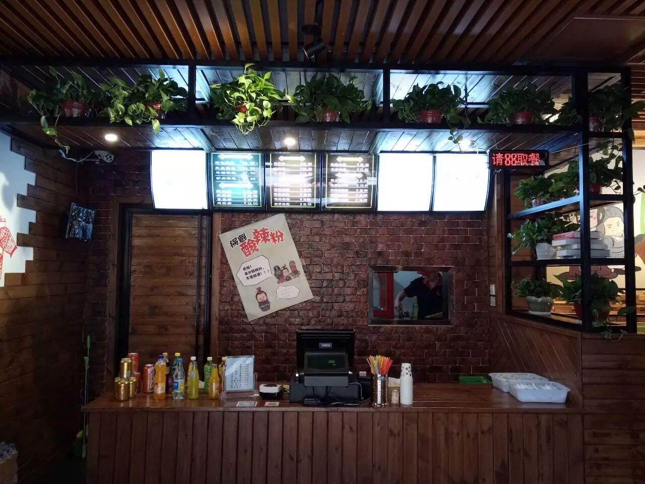 放眼望去,从木褐色吊顶投下来的灯光很有老式中餐馆的氛围,而桌椅板凳以及墙面绘饰又在复古中透着新鲜,巴适小食用漫画的形式完美呈现。这样的装饰让人浑然不知自己要吃一碗酸辣粉,座位旁的书架格子上摆满了图书,等餐的功夫再也不会觉得无事可做,随手抽取一本打发时间。