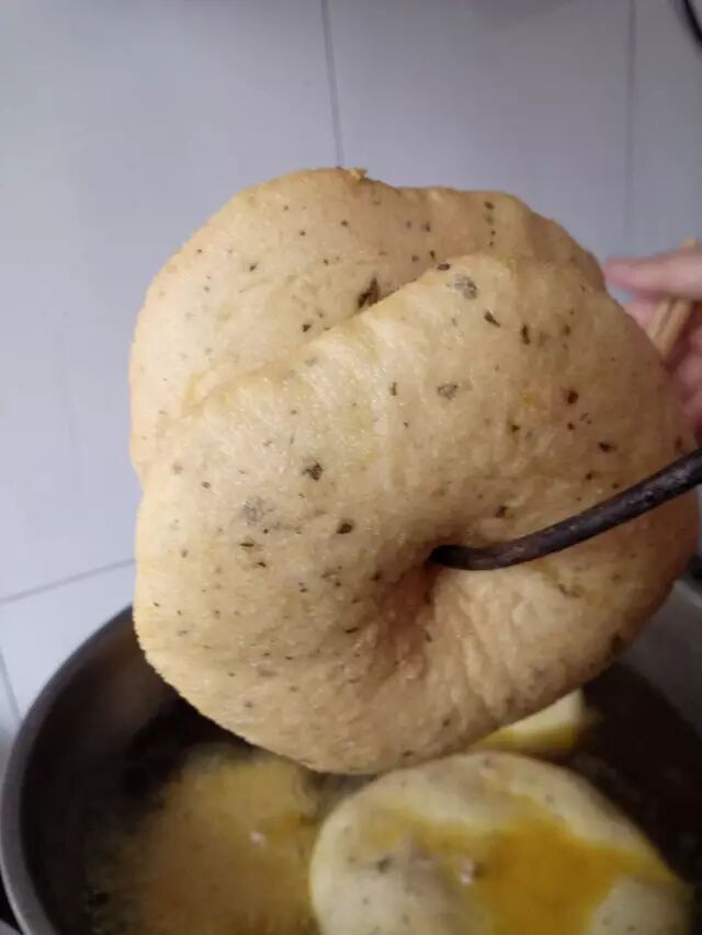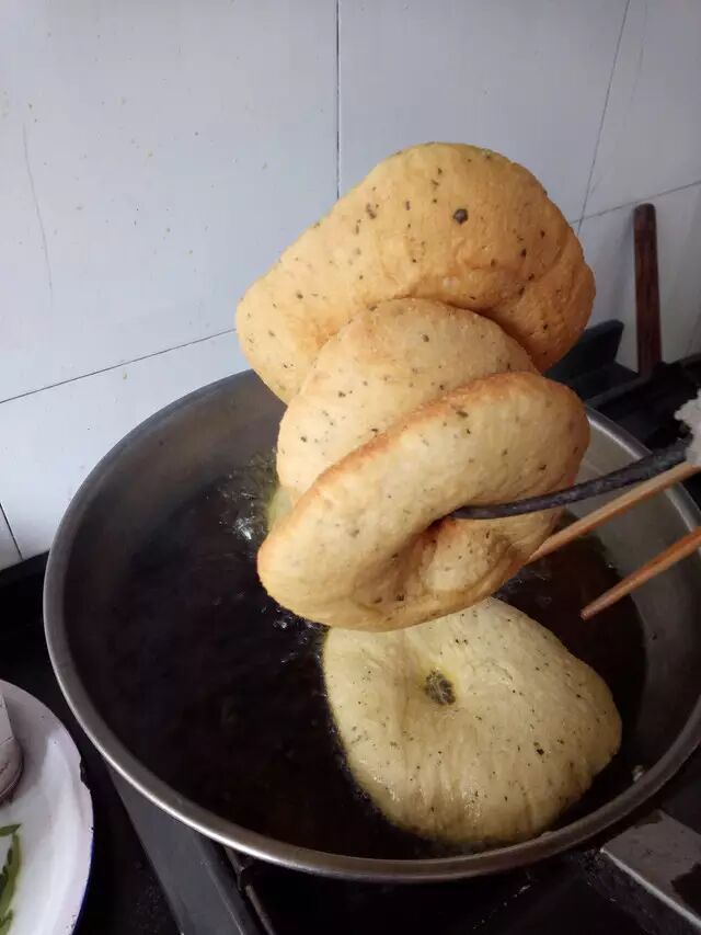 最近小编就去了趟奶奶家。缠着奶奶炸了一次油饼。奶奶先将面和的软软的,里面还放入了晒干的花椒叶。农村人喜欢将花椒叶晒干后保存起来,在炸油饼、蒸花卷时捏碎了掺入面里,别有一番风味。和好的面放在炉子边上,明天一大早起来就可以开始炸油饼迎接儿孙们了。
