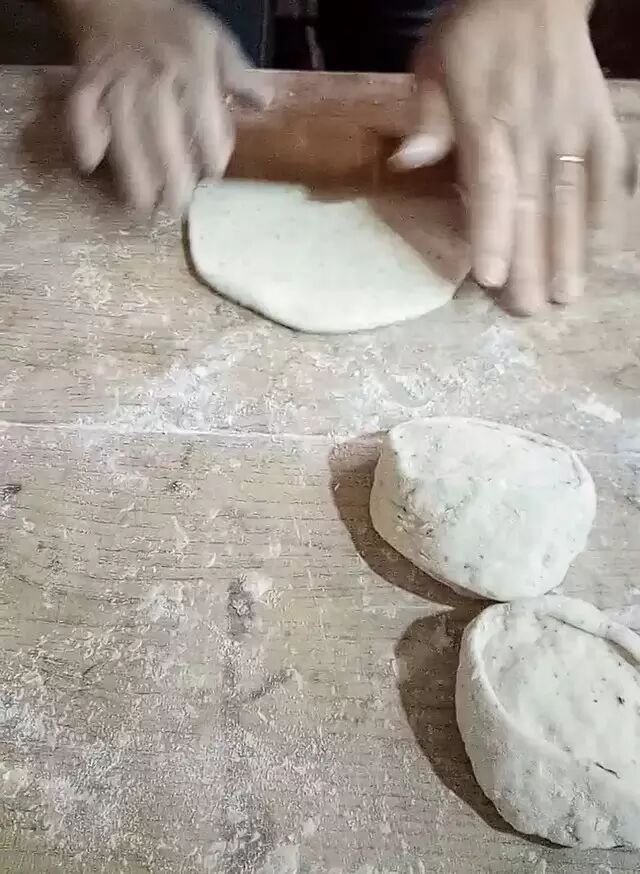 一大早,姑姑就来了。奶奶和好的面也已经发好了,切下一块儿开始开始动手吧!