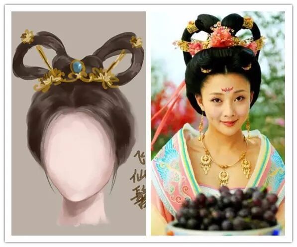 再配合上蛇精阿姨的发型——一种叫做飞仙髻的发型。最早也是出现在南北朝时期。