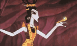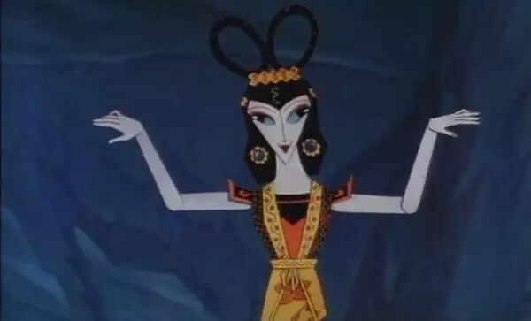 这动作,这风格。是的,没错,像不像甘肃敦煌的壁画——飞天?敦煌的壁画是从十六国开始,历经十个朝代,历时千余年,直到元代末期。所以他包含了各个朝代的绘画风格,而像蛇精阿姨的这种画风恰巧符合南北朝时代的人物画风。