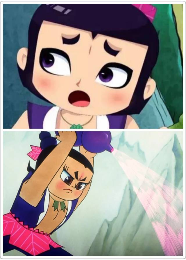 新版葫芦娃(皮肤变白了,美瞳戴上了,眼线加深了。总觉得少了点正义凛然,多了点娇羞可爱)