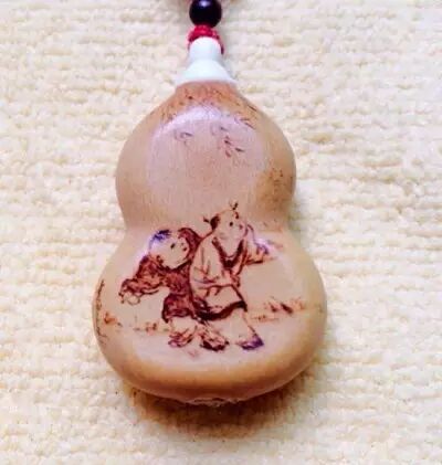 除了以上实用价值外,夹扁葫芦由于肚子扁平,在上面押花、烙画难度较小,因此又可作为初学葫芦押花、烙画者的练习材料。