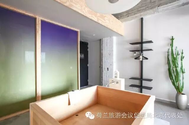日式与欧式相结合,半透明的屏风给人以黎明或是黄昏的错觉Volkshotel酒店位于阿姆斯特丹知名的旅游观光区奥斯特,包含有 172 间客房,绝大多数客房都能欣赏到阿姆斯特丹的广阔美景。其中一间名为Bathing Bikou的房间,由设计师创造出了禅宗之感,加入了一个日式木质浴盆和可滑动的几块半透明的屏风,“我设计的这几块滑动屏风,是半透明的印花布,类似于天空的感觉,它们共同创造出一个既开放又亲密的氛围。” ,是一幢 1960 年代的建筑。现在已经发展成为一个聚会场所,拥有餐厅、酒吧、会议室和艺术家工作室。带上电脑,来这里喝杯咖啡,开始工作,或是和朋友见见面,都是不错的选择。Volkshotel 还经常组织主办社区活动。地址:Wibautstraat 150, 1091 GR Amsterdam, 荷兰