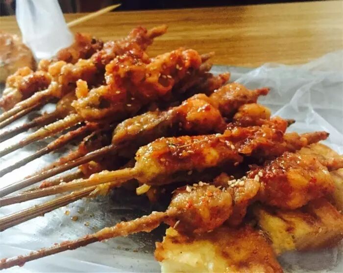 牛板筋、田螺、炸串,貌似还有三家卖麻辣串的,每一家的味道都不同,种类也有差别哦~~