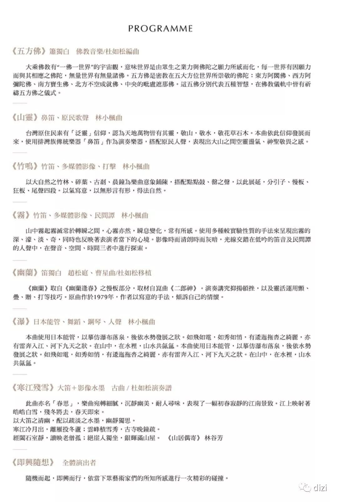 曲目:《五方佛》、《 山灵》、《竹鸣》、 《雾》 、《幽兰》、 《瀑》、《 寒江残雪》 、《即兴随想》