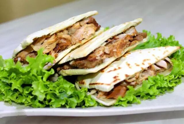 白锅魁现装好馅后放入微波炉打热现吃,可以选择不同的肉,夹在饼子里吃,味道超级的棒!还有卖凉菜锅盔的,锅盔里面夹拌好的菜丝,味道简直不要太好!