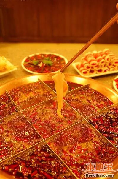 1、正宗的重庆火锅在锅里面有9个格子,按菜分格而食。