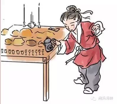 第一排:放酒水,中间6杯茶(六六大顺),不倒水。六杯茶两边各放6杯酒,一般用黄酒。