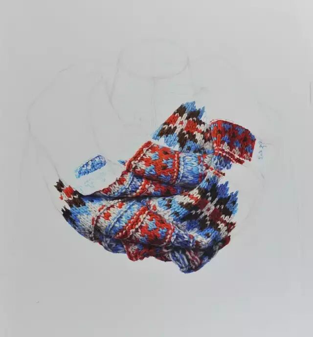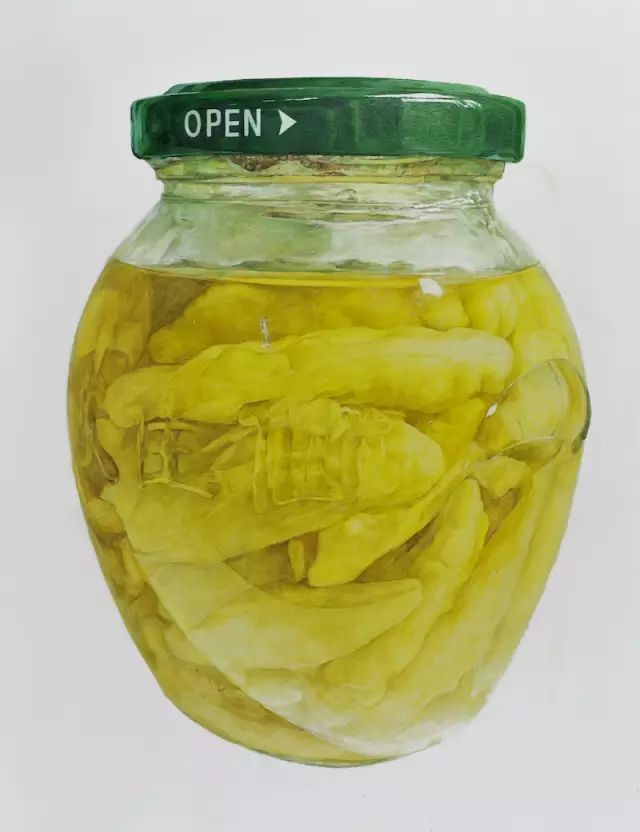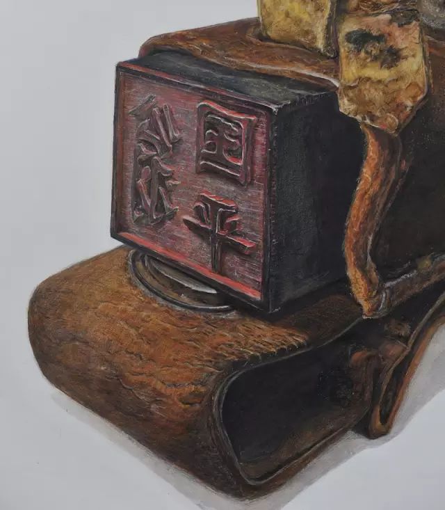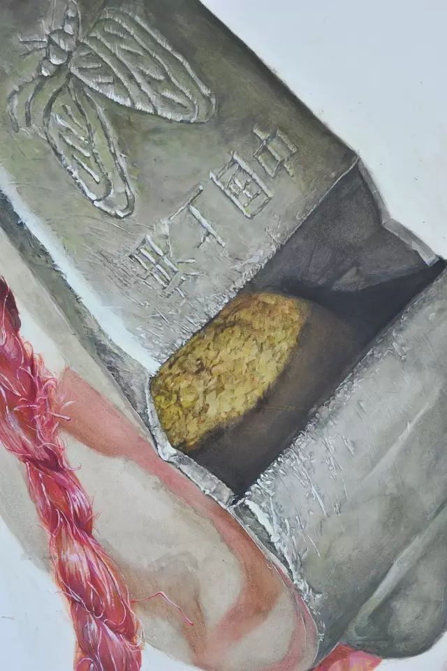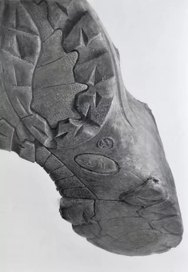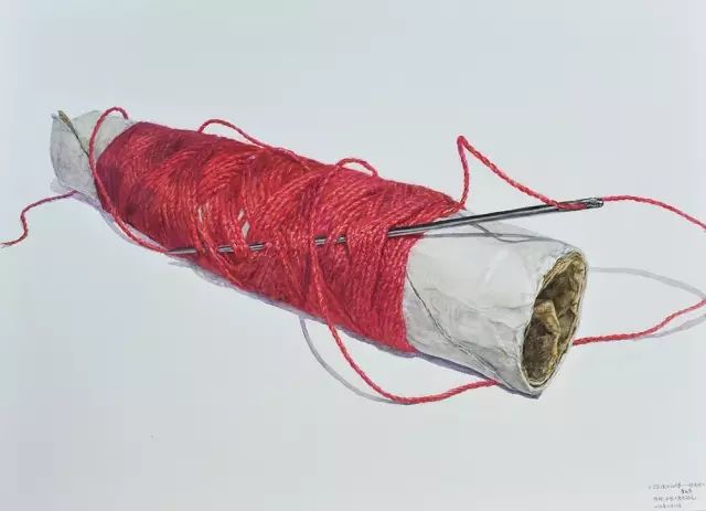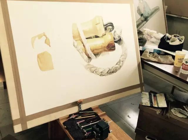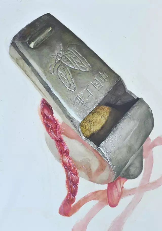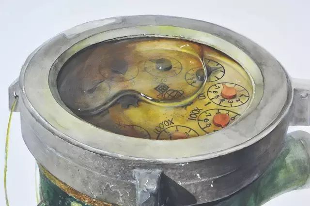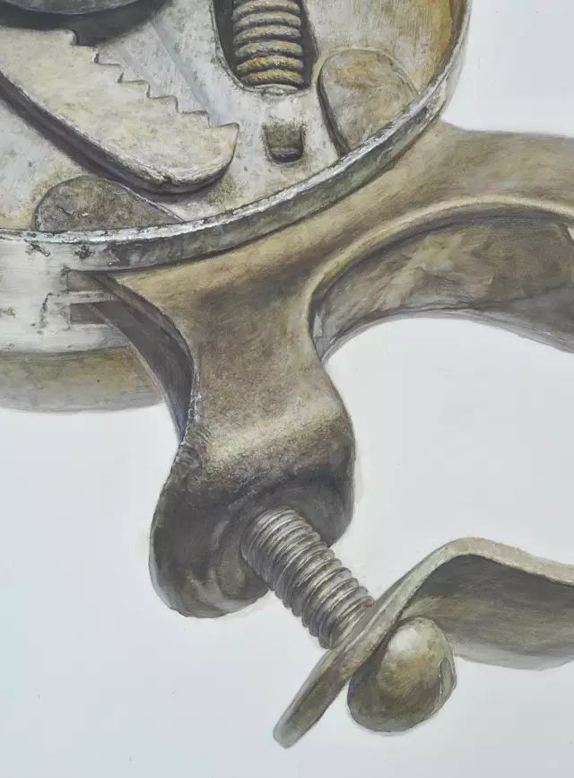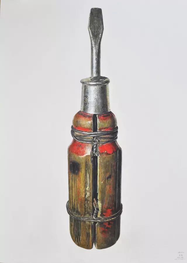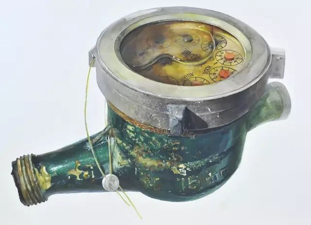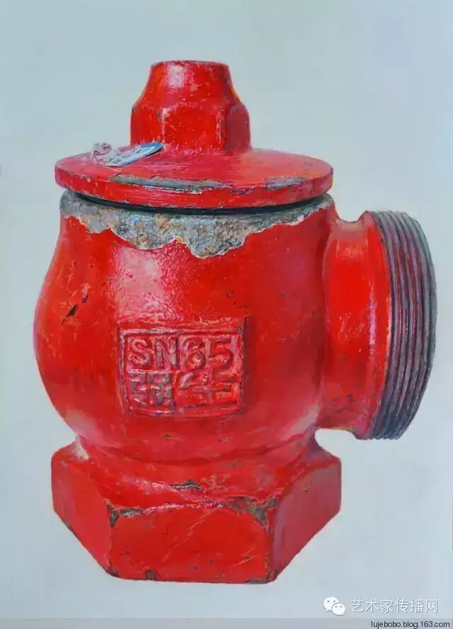 当老师激发了作者对各种锈蚀过水阀的兴趣后,他冒雨跑了多家废品站搜集素材,最后确定了这个色彩与造型都非常饱满的阀头。不断尝试绘制小稿,最终找到了真正适合这个静物的表现方法,完成画面非常有表现力。