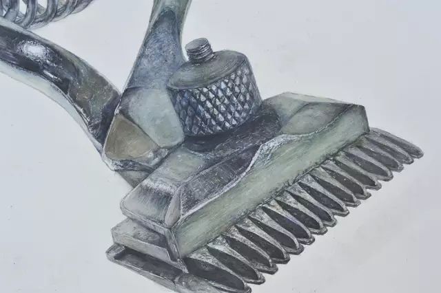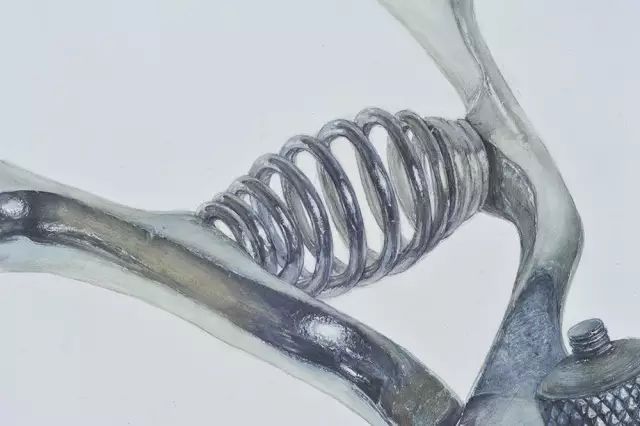 5、来自以“锈蚀”命题的作品《水阀》。同学们描绘了各种生锈的小零件,虽不是普通人眼中光滑圆柔唯美的物品,却体现了现实粗砺的深度。