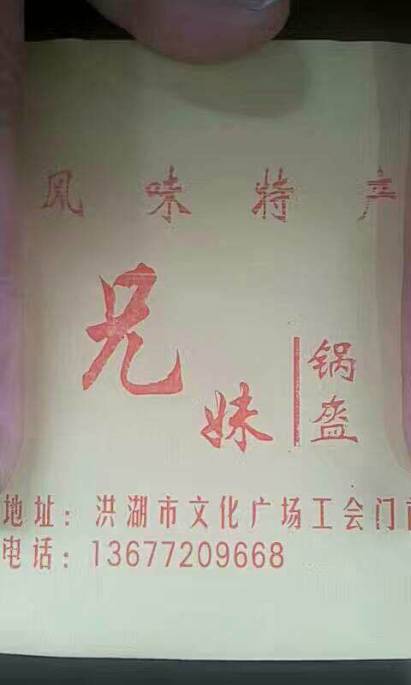 兄妹锅盔店专门印制的食品包装袋