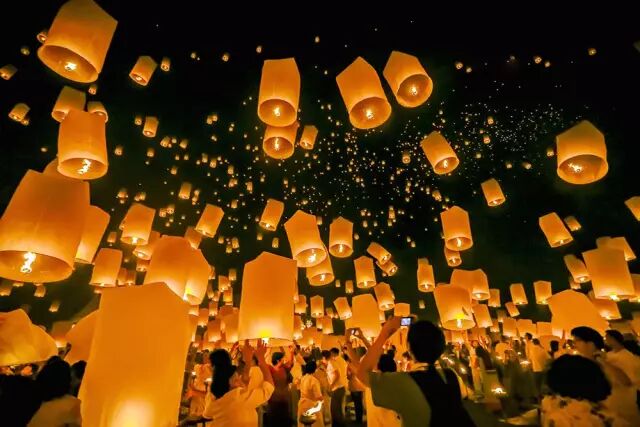 水灯节。每到11月,泰国都会迎来著名的水灯节。到了晚上,万盏水灯一起上天,景象甚是壮观。当然,自己选一个,写上祝福,放飞它,才是水灯节最棒的体验。