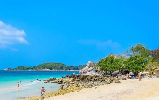 长达40公里的芭提雅海滩阳光明媚,蓝天碧水,沙白如银,椰林茅亭,小楼别墅掩映在绿叶红瓦之间,一派东方热带独特风光,令人心旷神怡,是良好的海滨游泳场。
