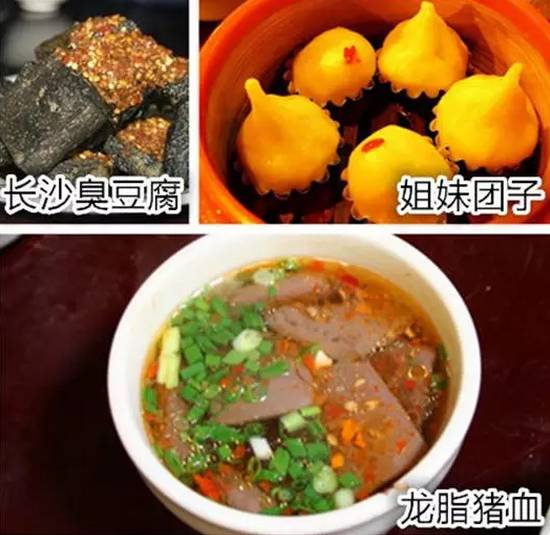 长沙其实小吃最出名,所以好吃的一定不要错过:姊妹团子、龙脂猪血、糯米粽子、火宫殿臭豆腐、椒盐馓子、长沙臭豆腐、芙蓉三鲜火锅、口味虾、湘宾春卷、乾煎鸡油八宝饭、萝卜丝饼、麻仁奶糖、红烧猪脚、油炸臭豆腐、浏阳茴饼