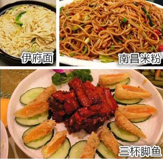 南昌小吃有:白糖糕、糖画、豫章酥鸭、李渡酒、鄱阳湖银鱼、石头街麻花、瓦罐汤和拌粉、牛舌头、金线吊葫芦、芥菜团子、酿冬瓜圈、家乡锅巴、大回饼、木瓜凉粉、伊府面、吊楼烧饼、状元糕、如意糕、麻辣烫、南昌米粉、军山湖大闸蟹、葛粉、麻辣藕片、万寿宫马打滚、万寿宫糊羹、风味烤卤、鄱阳湖狮子头、三杯脚鱼、竹筒粉蒸肠、藜蒿炒腊肉、煌上煌。
