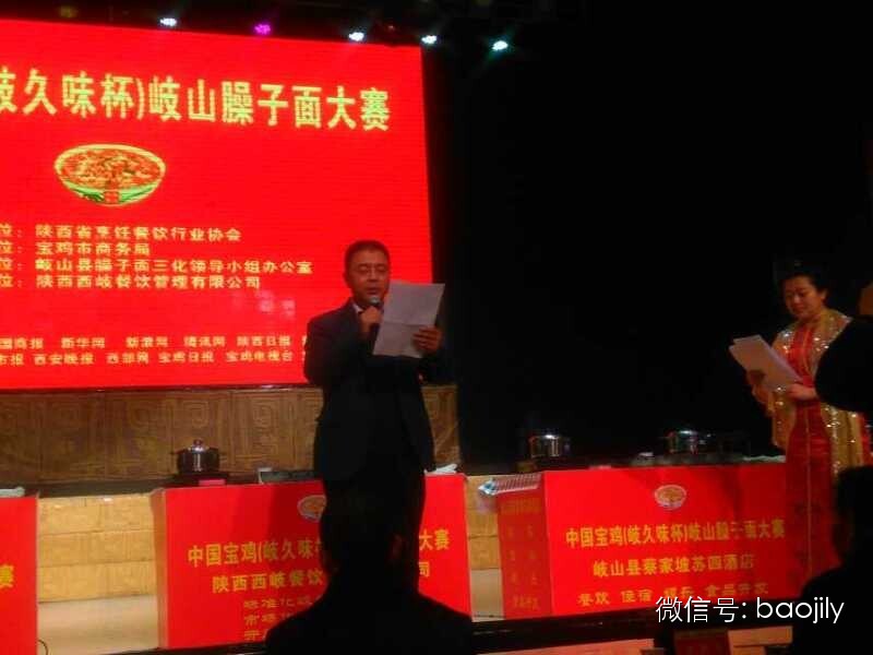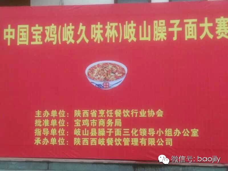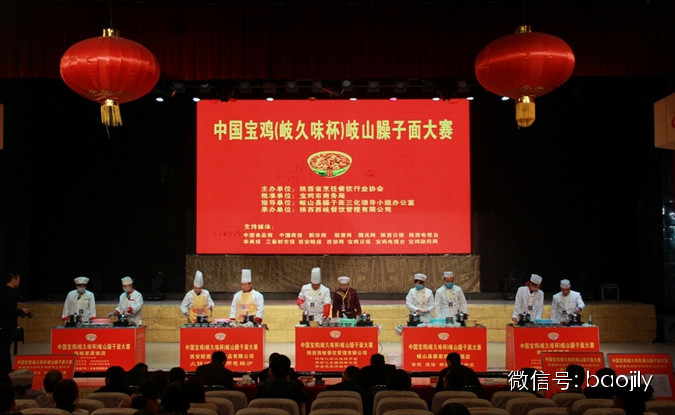 宝鸡市周秦文化产业园乐府 为弘扬周秦文化,传承西岐传统美食,由世界中国烹饪联合会、省烹饪餐饮行业协会共同主办的2014年中国首届岐山臊子面大赛在宝鸡举行。来自宝鸡市区、岐山县等区县的30多个代表队60多位厨师各显身手,最终17支参赛队伍分获金银铜奖。大赛既是从事岐山臊子经营面企业和个人的一个交流展示的平台,也是为了进一步完善岐山臊子面标准化。目前宝鸡已有全套标准化臊子面产品上市,无论开店或是在家,几分钟内即可吃到完全一样的臊子面。
