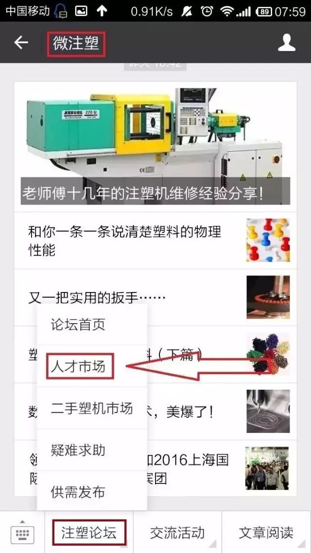 温馨提示:要如何快速进入微注塑论坛--人才市场呢?只需两步!