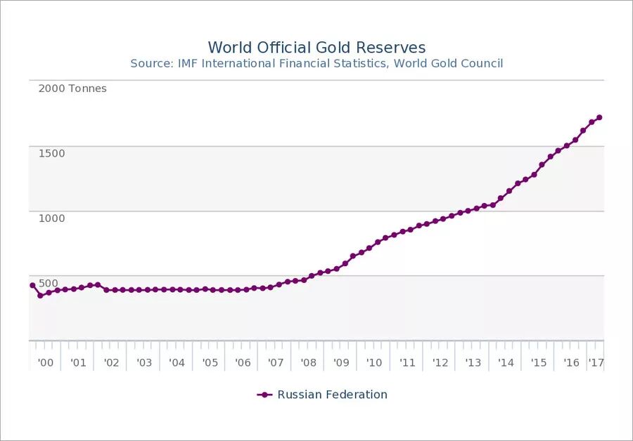 事实上,。此前在2014年一季度克里米亚公投之后,俄罗斯的黄金储备规模提高了近75%。