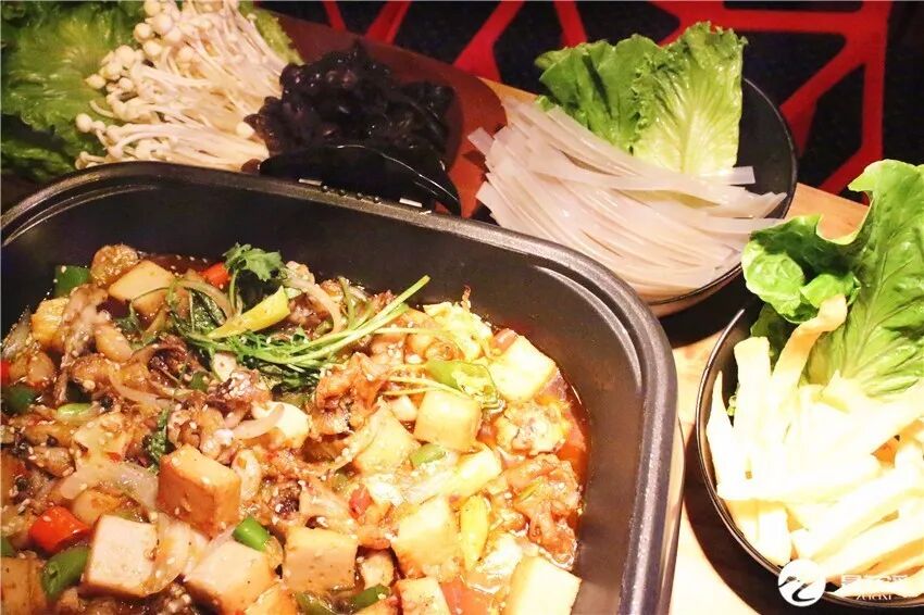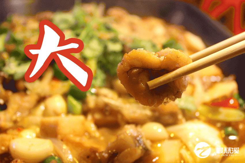 超大块的牛蛙肉,一口咬下,肉香满溢,配上有嚼劲的鱼豆腐,让牛蛙肉原本厚实的肉质配上鲜辣,加上默默发功的紫苏叶,将鲜、辣、香发挥到极致。