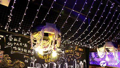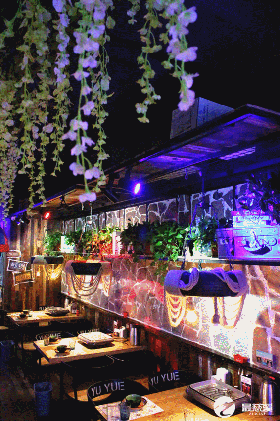 渔越的环境简直迷幻呀,夜店风?渔港风?少女心?都一起满足你。汽车轮胎做灯罩,粗麻绳挂灯泡,扳手做门把,社会社会。