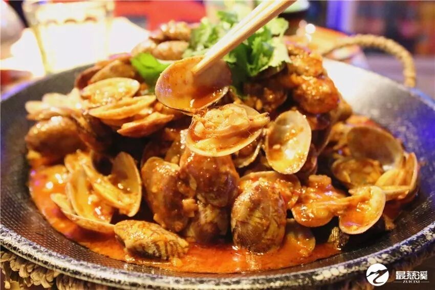 火山爆花蛤是用石锅烤的,鲜红的辣椒粉末均匀的被花蛤吸收,去除了花蛤原有的泥腥味,麻麻辣辣,就是一个大写的“鱼羊”!
