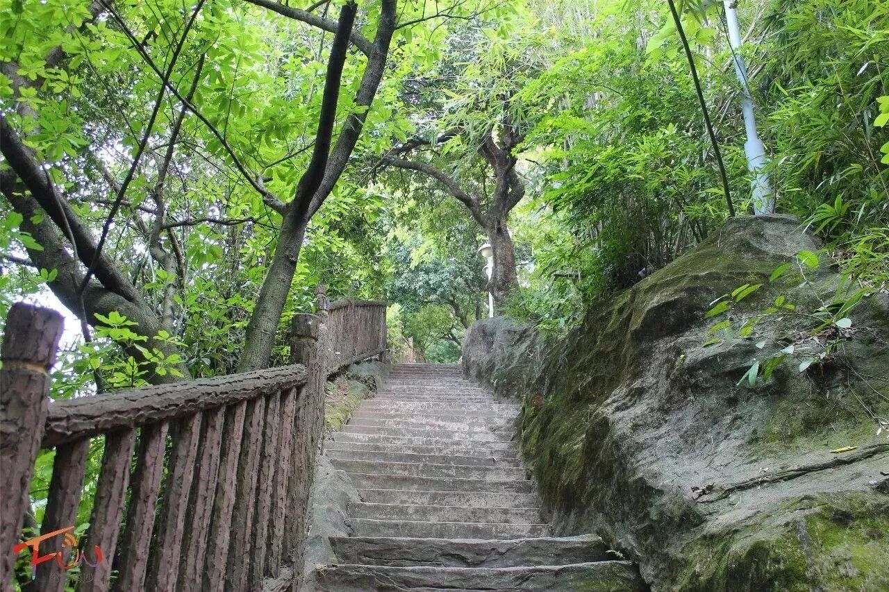 顺着石阶往上走,两旁都是树根深扎的老树。时隔多年再次踏进这里,曾经的热闹烦嚣早已不知踪影,如今只有偶尔三两人漫步在林间,好一个历尽繁华归于平静的大岗公园。
