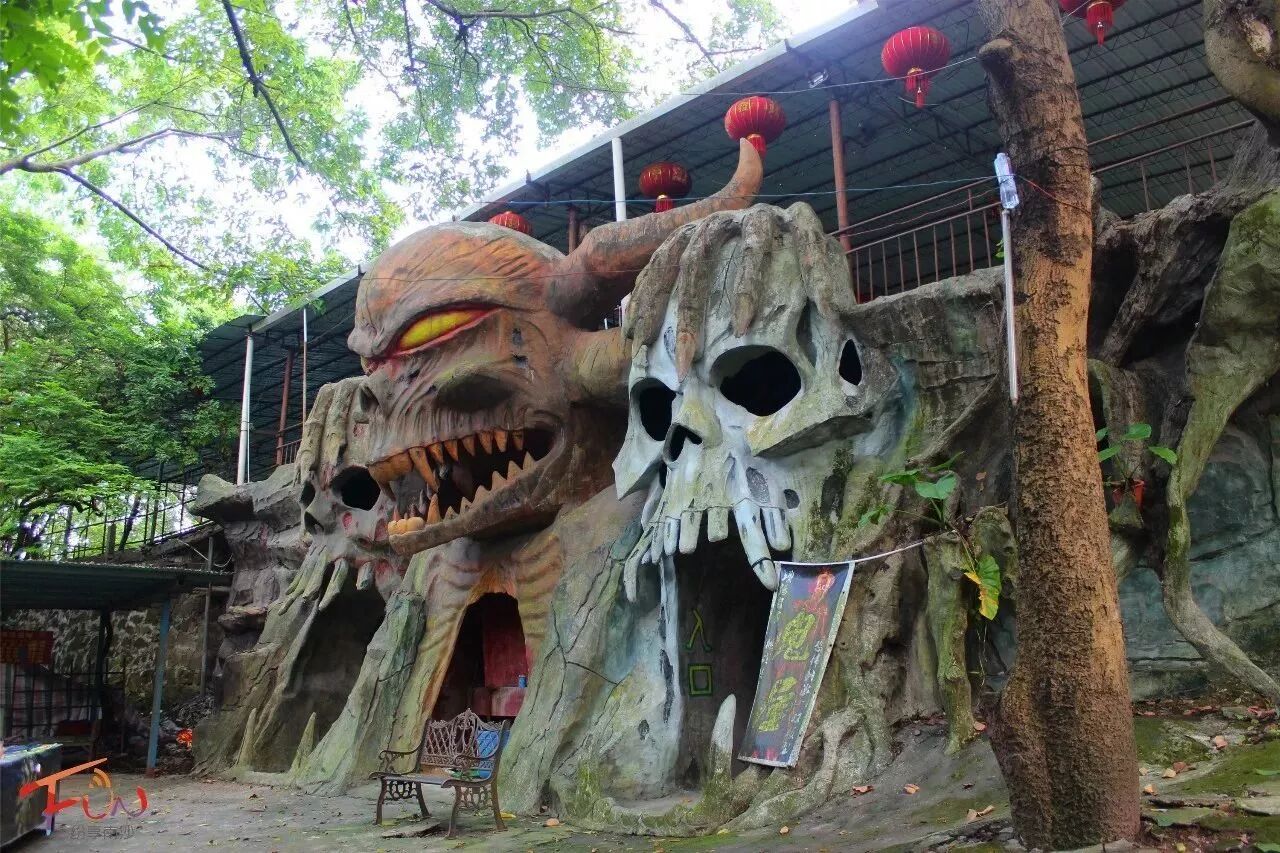 也是不知道从什么时候开始,大岗公园里竟然建起了“鬼屋”,狰狞凶狠的雕像,在茂密的大树下,显得格外阴森。