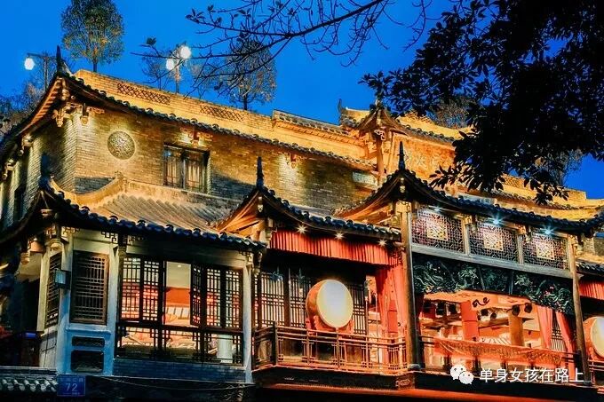 入夜后宽窄巷子所有的灯光都亮起来了, 还是挺好看的。