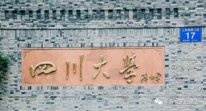 四川大学的门牌。这个学校虽然不是开放性大学,但是对路人的包容性也很强,骑着个小黄车就可以进去了,也不需要登记,这放在我们学校,没有学生证那是万万进不去的呀。