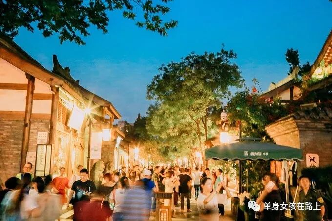 洛带结束已经不早了,因为在古镇里吃了不少小吃,所以完全不饿,晚餐就免了吧,出发去成都市区看宽窄巷子的夜景和九眼桥的夜景。那可是成都有名的酒吧一条街呀,不过我是只对民谣吧感兴趣的,其他的迪吧就算了吧。