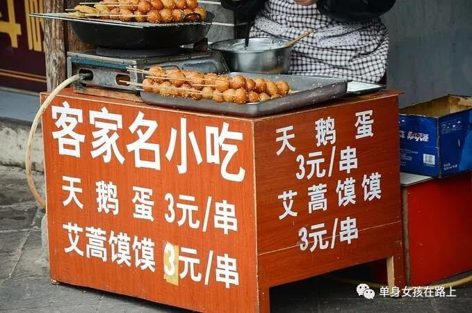 每个古镇都少不了的东西,旅游纪念品和特色小吃,洛带古镇虽然在成都周边,但是卖的却不是诸如酸钠粉、牛肉锅盔、串串香这些著名的四川小吃,而是以客家名小吃为主,还有一些野菜做成的油炸饼,味道也很独特,这大概可以算是洛带与众不同的地方吧。