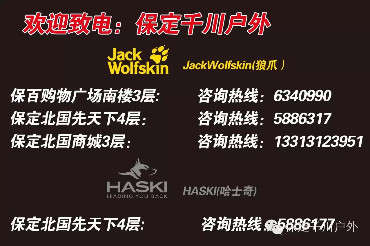 关注“保定千川户外”微信公众号,优惠信息、会员活动、户外知识早知道!!!