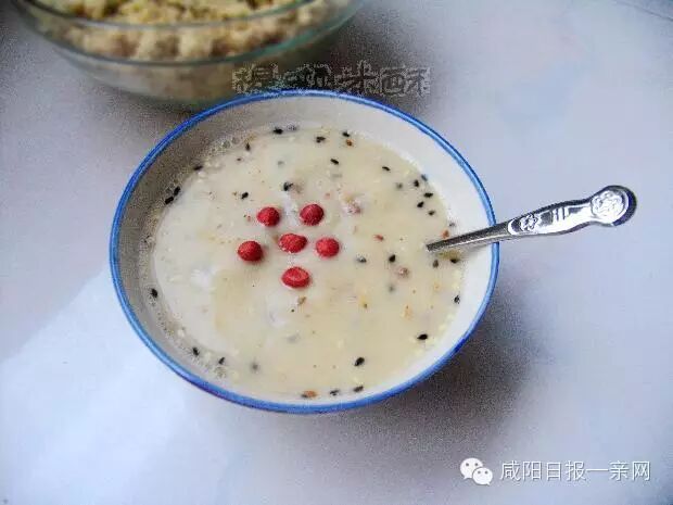 油茶,回族特色小吃,比较有名的就是德富祥油茶面,主要原料有精致小麦粉、花生、核桃仁、杏仁、绿豆、红豆、豌豆粉、黑芝麻、白芝麻等等,有清热解毒,止渴消暑的功效,无副作用。陕西油茶有悠久的历史渊源,左图为西安北院门油茶雕像,北院门也有“油茶一条街”的称号。陕西油茶随着丝绸之路被远行者传播,不仅是陕西的著名特产也是中国西北的著名特产。