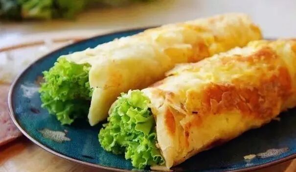 将饼摊开,倒入鸡蛋,可以根据个人喜好加入生菜、烤肠、肉松、里脊等配餐,别看鸡蛋灌饼其貌不扬,一餐中需要的食物却都有,选择鸡蛋灌饼为早饭的人群是属于追求效率加营养的“生活家”,自己合理搭配每天的早饭。