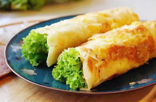 将饼摊开,倒入鸡蛋,可以根据个人喜好加入生菜、烤肠、肉松、里脊等配餐,别看鸡蛋灌饼其貌不扬,一餐中需要的食物却都有,选择鸡蛋灌饼为早饭的人群是属于追求效率加营养的“生活家”,自己合理搭配每天的早饭。