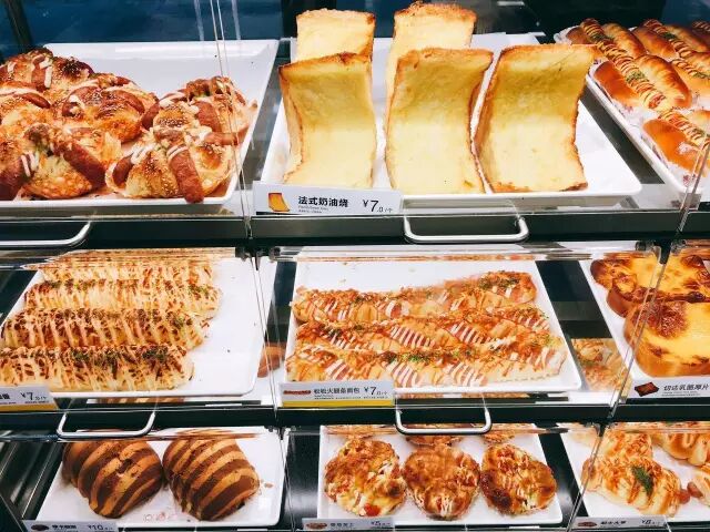 隐藏在伊藤洋华堂的负一楼,稍微有点小,面包堆积在一起看起来有点拥挤...除了面包外,还有月饼、蛋糕、西点、中点、冷饮等6大类产品,就是感觉太小众了点?