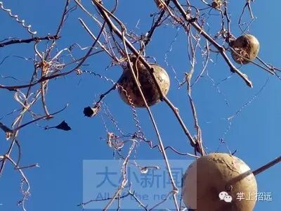 原来这是一片天然的野生葫芦,数杈上挂的满满的在阳光照射下像一群调皮的葫芦娃,随风摇摆,非常可爱,就连地上都爬满了,记者粗略清点了一下足有三百多只小葫芦,只是其生长在人们很少看到的地方,属愿生态植物,自然开花结果,一直藏在山中无人识。